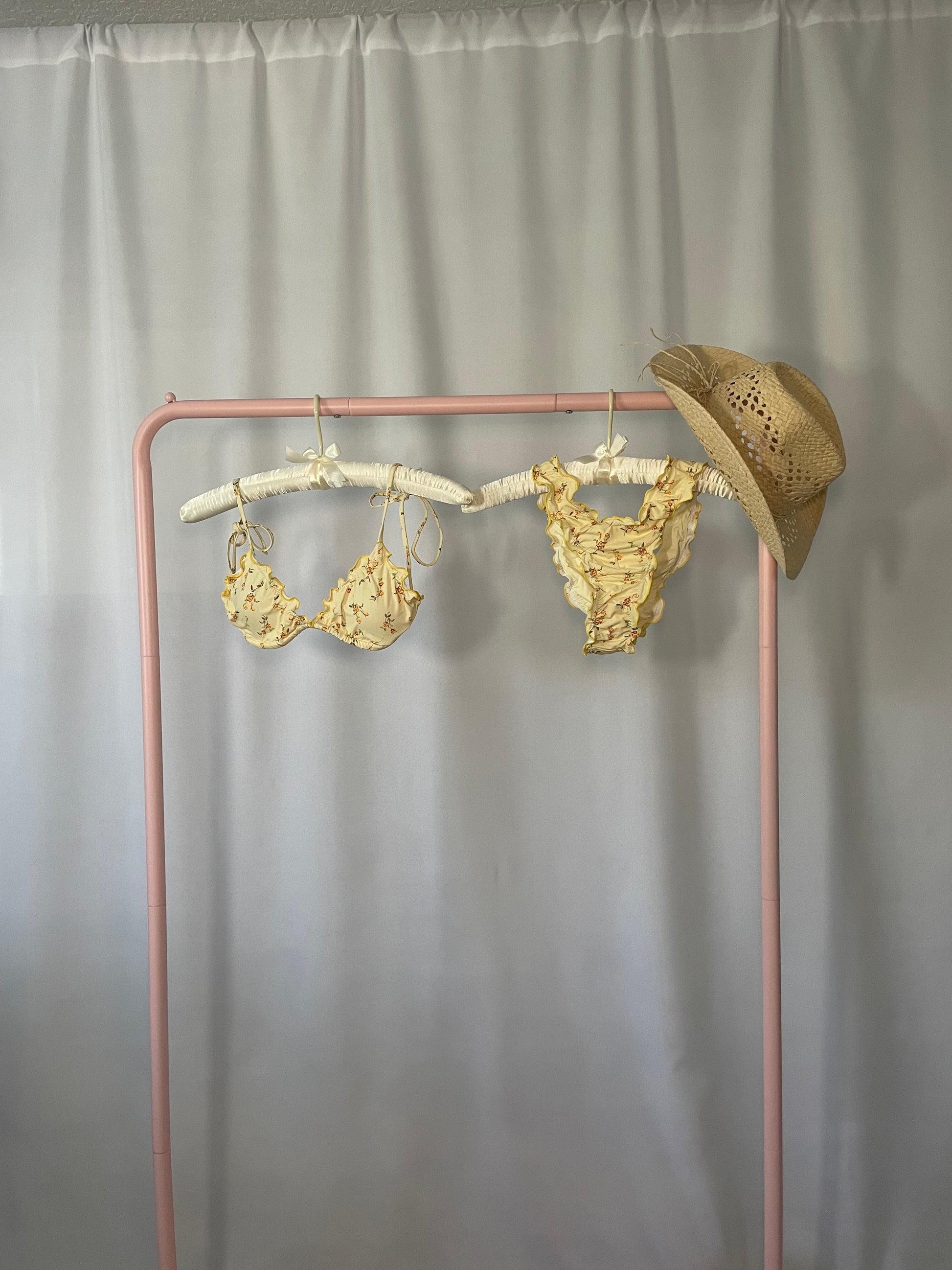 Embrace summer in the Willow Bikini Set. Featuring a soft light yellow base with a delicate floral print, this set is both fresh and feminine. With adjustable straps and a flattering fit, it's perfect for beach days, poolside lounging, or soaking up the sun in style.